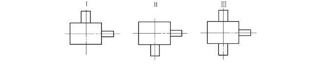 (1) PWU型—蝸桿在蝸輪之下平面二次包絡環面蝸桿減速機; (2) PWO型—蝸桿在蝸輪之上平面二次包絡環面蝸桿減速機; (3) PWS型—蝸桿在蝸輪之側平面二次