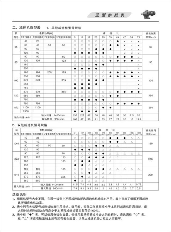 減速機|擺線針輪減速機-B、X系列擺線針輪減速機選型參數表-海洋傳動