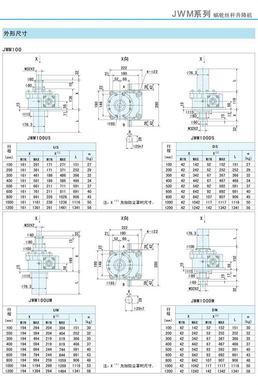 減速機(jī)|蝸輪絲桿升降機(jī)-JWM升降機(jī)100外形尺寸圖-海洋傳動(dòng)